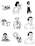 emotion feeling tired thirsty surprised sick scared happy sad hungry hot