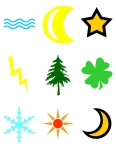 nature grass leaf flower fern cloud fire campfire water moon star lightning pine tree shamrock snowflake sun
